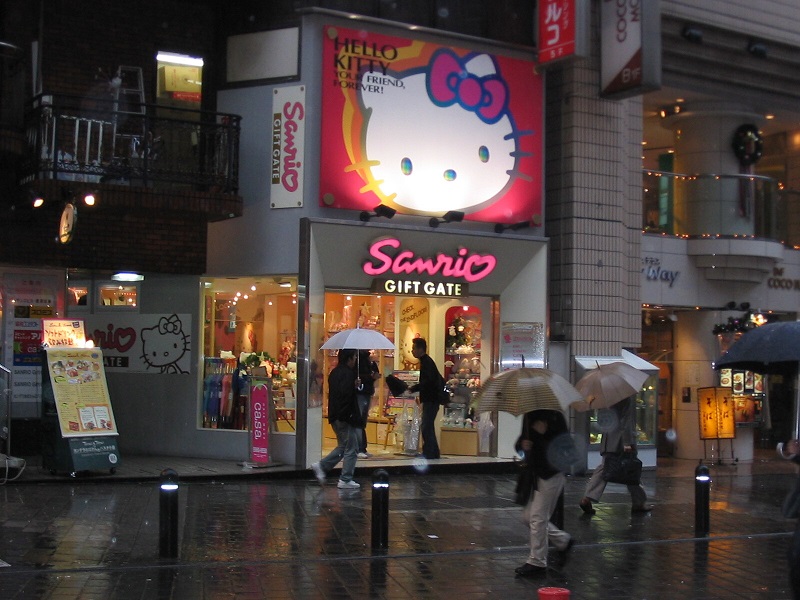 Je vais dans le magasin Sanrio (Hello Kitty). Je trouve même la Kitty Harajuku en gothic lolita. Je l’ai prise en photo. Elle ressemble beaucoup à un certain Mana, même le logo ressemble à si méprendre au logo de Moi même moitié. Je l’ai vu aussi au Kiddy Land qui se trouve sur Omotesando dôri à côté de la gare d’Haraujuku.