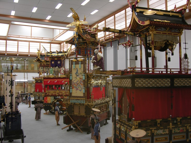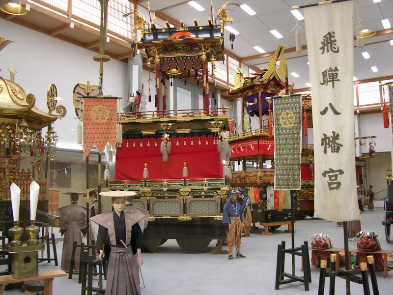 Le hall d’exposition des chars de Takayama en présente quatre yatai (chars) sur les 23 que compte la ville (ils changent régulièrement). Les autres yatai sont dans des hangars disséminés dans toute la ville. Les karakuri, des marionnettes exécutant des acrobaties sur les chars, sont une autre attraction importante.