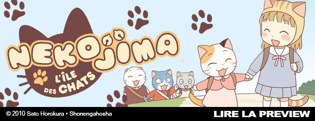 Comme son homologue Pan’Pan Panda, Nekojima s’adresse aux plus jeunes. Les chapitres sont courts (2 à 3 pages), l’album est tout en couleur et dans le sens de lecture français. L’histoire nous raconte la vie de Cathy sur l’île des chats. A travers les saisons et les fêtes on découvre la vie des chats et de cette petite fille qui se fait passer pour un chat.