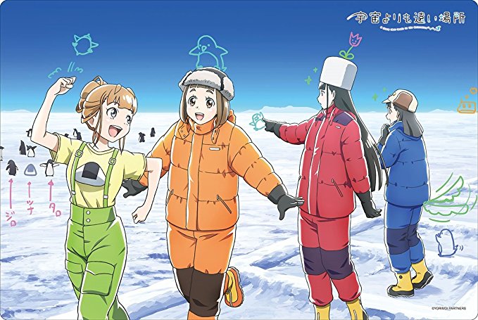 Pour une fois, je vais vous parler d’une série que j’ai vu en rattrapage parce que j’en ai lu du bien sur twitter (Merci @OpaleDeFeuAC !). Il s’agit de l’anime original : A Place Further Than the Universe connu aussi sous le nom de Yorimoi (Sora Yorimo Tōi Basho). C’est une série sortie en janvier 2018 disponible sur Crunchyroll et réalisé par la talentueuse Atsuko Ishizuka (que j’ai pu rencontrer en dédicace à Paris Manga en octobre 2018) au sein du studio : Madhouse. Le scénario original est de Jukki Hanada et le chara design par Takahiro Yoshimatsu. Cette fine équipe nous a concocter une série feel good à voir absolument.