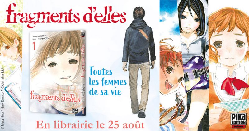 Fragments d’elles est l’adaptation en manga du roman de l’écrivaine Taïwanaise MAG HSU. Il est dessiné par Nao Emoto une mangaka japonaise dont c’est la première publication traduite en français chez Pika Edition. Ce manga en sept tomes était prépublié dans le shōnen magazine. Petite anecdote, elle s’est occupé du chara desing du film Josée, le tigre et les poissons. En ce moment elle est sur l’adaptation du ligh novel Magical Girl Risuka de NisiOisin.